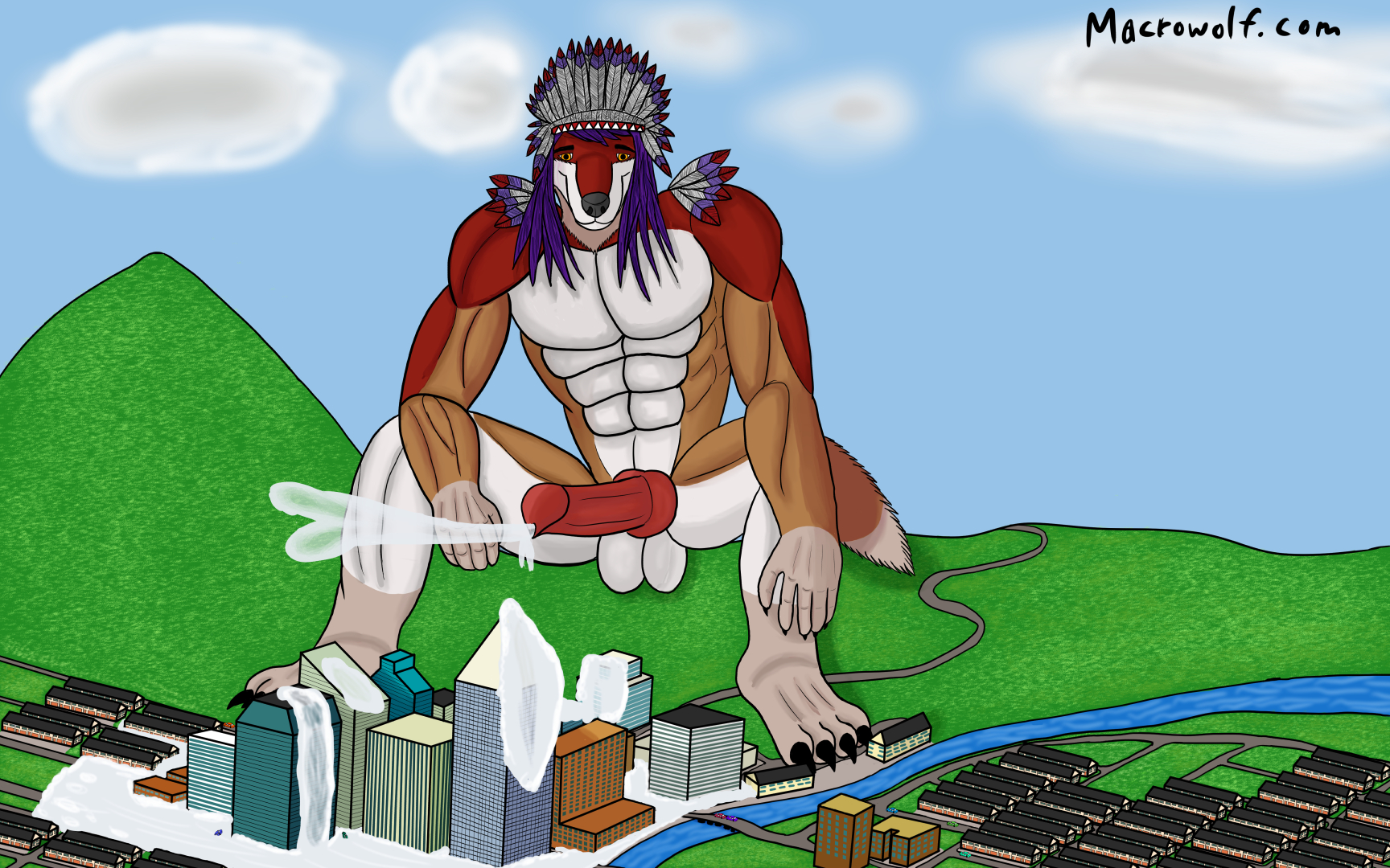 One of the greatest things about being the chief of a tribe full of horny macro wolves is performing the daily ritual of marking your tribe's territory. The Fangkotah tribe isn't short of cities to cover in a thick morning load. The piss version is here.