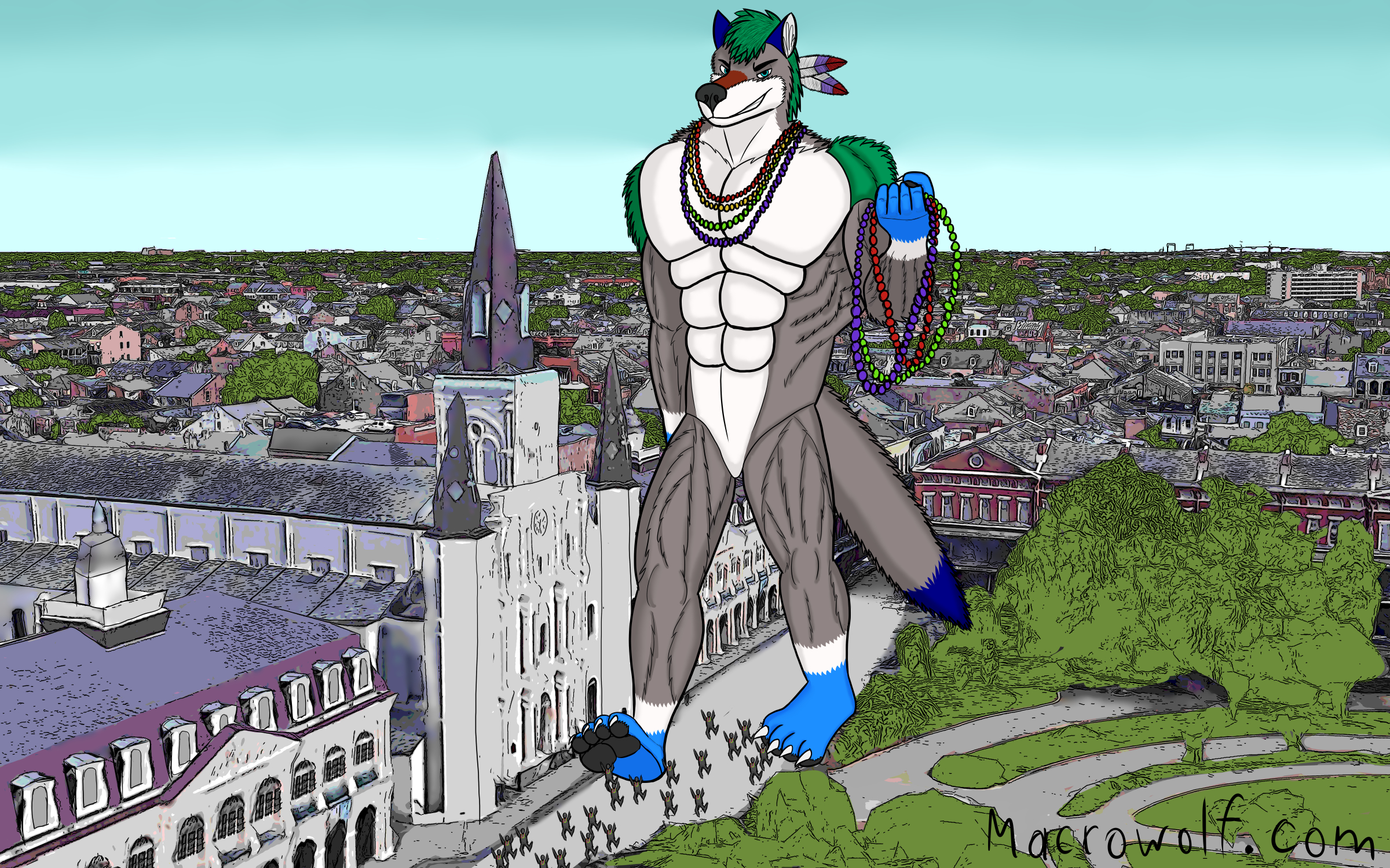 Hey New Orleans. How nice of you to invite me to march in their Mardis Gras parade. Wait, you didn't realize I was a giant wolf who doesn't watch his step? Heh, sucks for you I guess.
